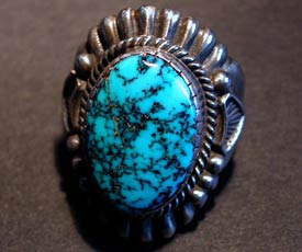 | Item #JG1. Harry H Begay Silver Ingot Lone Mt Turquoise Ring |