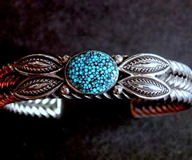 Perry is one of the most collectable Navajo silversmiths working today. Perry Shorty won the 1995 SWAIA Fellowship, his work is in museums in this country and abroad. He is represented in this country's finest collections. |